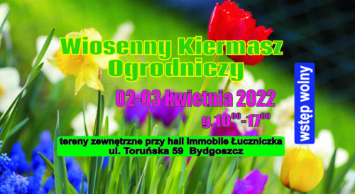 WIOSENNY KIERMASZ OGRODNICZY, TERENY ZEWNĘTRZNE PRZY HALI LODOWISKA TORBYD UL. TORUŃSKA 59 W BYDGOSZCZY W DNIACH 15-16 KWIETNIA W GODZINACH 10.00-17.00 WSTĘP DLA ODWIEDZAJĄCYCH JEST NIEODPŁATNY! ZAPRASZAMY! Na miłośników zieleni czekają producenci i handlowcy oferujący różnorodny materiał roślinny do ogrodu, na działkę, czy na balkon. Zakupić będzie można m.in. drzewka i krzewy owocowe, drzewka i… Czytaj dalej Wiosenny kiermasz ogrodniczy